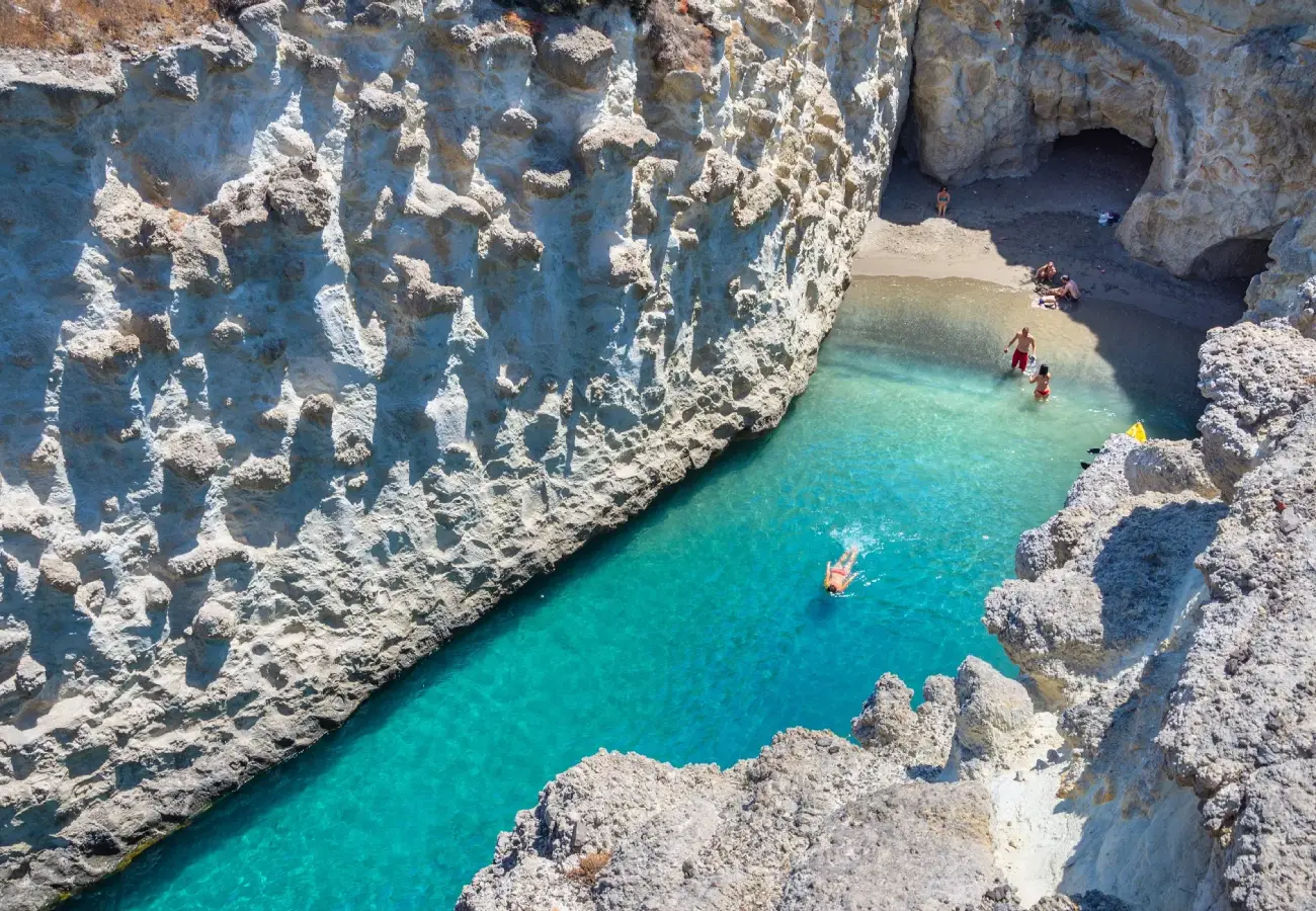 Discover Milos through its iconic waters and dramatic coastline.